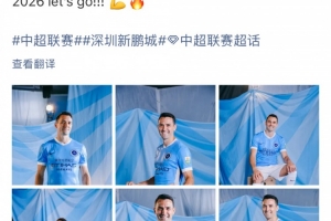體育資訊2月28日訊 今日,深圳新鵬城中場周定洋更新社媒,曬出數張自己身穿新鵬城球衣的定妝照,并配文寫道:“2026,沖沖沖!”