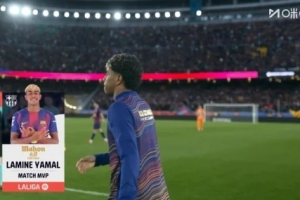 體育資訊3月1日訊 西甲第26輪,巴薩主場4-1戰(zhàn)勝比利亞雷亞爾,賽后亞馬爾當選全場最佳球員。
