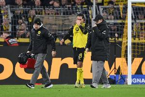 體育資訊03月01日訊 德甲第24輪,多特蒙德主場2-3拜仁輸?shù)魢业卤龋嗵仃犻L埃姆雷·詹因傷被換下。據(jù)《圖片報》報道埃姆雷·詹很可能遭遇重傷,最糟糕的情況是十字韌帶撕裂。比賽結(jié)束后兩隊球員也紛紛擁抱安慰埃姆雷·詹。