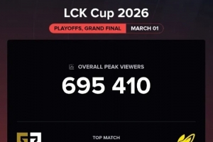 體育資訊3月2日訊 據Esports Charts數據統計,剛剛結束的LCK杯冠軍賽GEN對陣BFX在海外僅有69萬收視率。