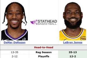 生涯至今,德羅贊常規賽面對詹姆斯13勝36負(勝率26.5%),季后賽2勝12負(14.2%)。