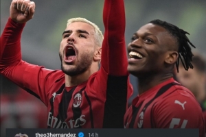 這是特奧對萊奧的寄語,最后用上了著名的合成詞“THEAO”,將兩人的名字融合在一起,就像他們這些年在米蘭場上并肩作戰一樣。