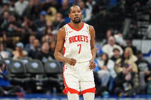 本場比賽,火箭球星杜蘭特首發出戰37分鐘,投籃15中8,三分球6中3,罰球11中11,拿下30分7籃板1助攻1蓋帽的數據。