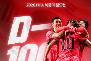 韓國足協官方社媒曬出倒計時海報,配文:“2026年世界杯倒計時100天。100天后韓國足球將再度點燃全球激情,超越極限,團結一心。”