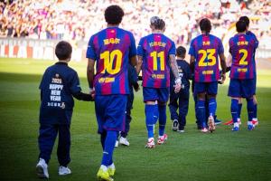 球場上,一線隊球員在賽前身穿印有中文名字的球衣亮相,并與來自巴薩聚龍官方球迷協會的華裔孩童一同入場。這一切都是為了慶祝象征著力量、活力和毅力的馬年。
