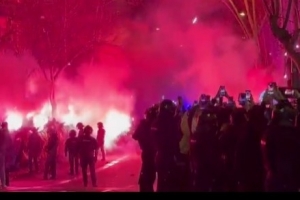 體育資訊3月4日訊 據科貝電臺報道,在前往諾坎普途中,馬競大巴遭到巴薩極端球迷投擲物品襲擊,這導致大巴車窗破裂。