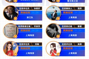 【體育資訊2026中超冠軍預測】活動正式上線,12位體育大V參與預測——海港、蓉城最被看好,孫雨軒的選擇是浙江。黃健翔認為“錯綜復雜,難以預測”,婁一晨則表示“看五輪之后”。