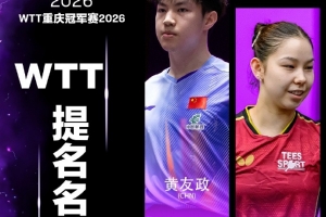 WTT重慶冠軍賽2026將于3月10日至15日舉辦,本站賽事冠軍將獲得1000點世界排名積分。