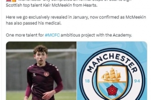 羅馬諾寫道:“曼城正式簽下蘇格蘭天才球員基爾·麥克米金,后者已通過體檢,這位來自哈茨俱樂部的年輕才俊將加入曼城的青訓項目。1月份的時候我曾報道過這個轉會消息。”
