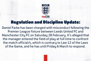 規(guī)章與紀(jì)律公告:“在2月28日周六利茲聯(lián)與曼城的英超比賽結(jié)束后,法爾克因不當(dāng)行為被正式指控。”