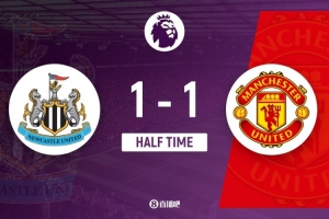 體育資訊3月5日訊 北京時間3月5日04:15,英超聯賽第29輪曼聯挑戰紐卡的比賽在圣詹姆斯公園球場進行,上半場特里皮爾開場傳中中柱,梅努抽射造險,拉姆斯代爾獻神撲,拉姆塞兩黃一紅被罰下,B費送點,戈登點射破門,B費助攻卡塞米羅頭球扳平,半場結束,曼聯1-1紐卡。