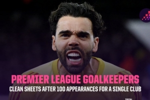 在英超門將代表單一俱樂部出戰(zhàn)100場比賽的零封統(tǒng)計(jì)中,拉亞與范德薩并列第六,切赫代表切爾西出戰(zhàn)100場后零封59場排名第一。