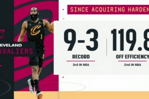 備注:哈登出戰(zhàn)的比賽 騎士8勝1負