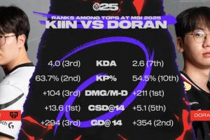 體育資訊7月10日訊 2025MSI勝決T1vsGEN賽前,LOL賽事官推分享兩隊上單數據對比。
