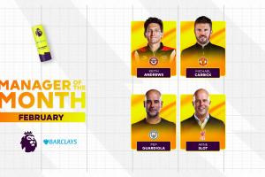 體育資訊03月05日訊 英超官方公布了2月最佳主教練獎(jiǎng)的候選,安德魯斯、卡里克、瓜迪奧拉、斯洛特入選,阿爾特塔未能入選。