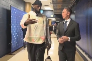 體育資訊3月6日訊 今日NBA焦點戰,湖人客場挑戰掘金,詹姆斯賽前到場后見到了自己的播客搭檔納什。