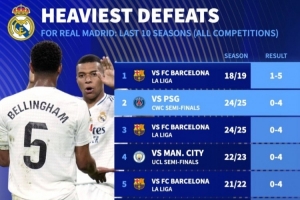 體育資訊7月10日訊 巴黎在世俱杯半決賽4-0血洗皇馬,轉會市場也列出了皇馬近10年來的慘敗紀錄,巴薩是銀河戰艦的最大苦主。