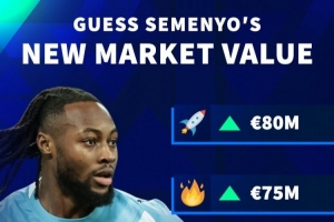 體育資訊3月6日訊 德國轉會市場預熱曼城前鋒塞梅尼奧的最新身價,他的身價最高可能達到8000萬歐,最低6000萬歐。