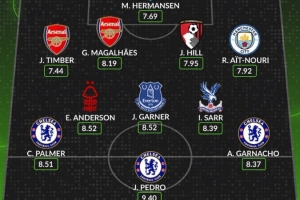 后衛:廷伯(阿森納)、加布里埃爾(阿森納)、希爾(伯恩茅斯)、努里(曼城)