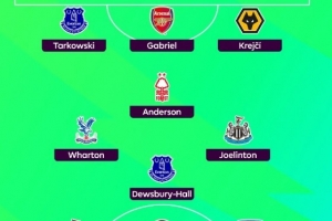 后衛:塔科夫斯基(埃弗頓)、加布里埃爾(阿森納)、克雷伊奇(狼隊)