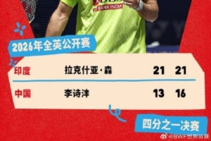 本場比賽,李詩灃13-31、16-21不敵拉克什亞,無緣晉級半決賽。
