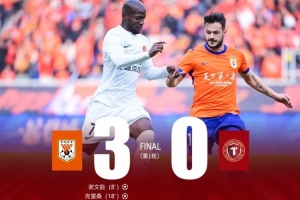 第74分鐘,山東泰山角球機會,澤卡后點包抄破門,遼寧鐵人楠波灣0-3落后。