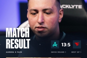 易邊再戰,手槍局FaZe沖B,黑屋XANTARES雙槍三殺,s1mple補掉XANTARES后下包,殘局寒王1v2被woxic帶走,但maj3r拆包失敗,FaZe拿到第3分。次回合Aurora強起,FaZe打穿A點連拿2分。第15局雨神發威A點三殺,FaZe拿到第5分。隨后FaZe沖A見面送Wicadia三殺,Aurora拿到第11分。第17局FaZe強起打B下包,雞哥燃盡三殺難挽狂瀾,Aurora拆包得手拿到賽點,最終中路Aurora中路殺光FaZe眾人,以13-5贏下比賽進入1-0組!FaZe掉入0-1組!