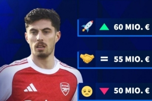 哈弗茨本賽季飽受傷病困擾,在英超只有5次出場,送出1次助攻。目前哈弗茨德轉(zhuǎn)身價5500萬歐,德轉(zhuǎn)給出其更新后最高身價可能升至6000萬歐,最低則會跌至4500萬歐。