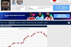 薩卡一年前還是生涯最高的1.5億歐身價(jià),隨后接連下跌到1.4億、1.3億,以及最新的1.2億。