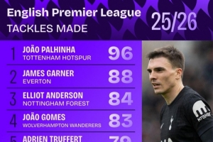 本賽季英超搶斷次數排名: