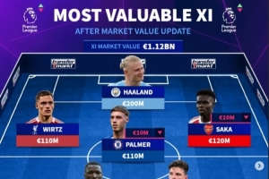體育資訊3月10日訊 德轉(zhuǎn)在北京時(shí)間3月9日更新了英超球員身價(jià),并列出了更新后英超身價(jià)最貴陣,哈蘭德2億歐領(lǐng)銜,凱塞多、維爾茨在列,11人中有阿森納5名球員。