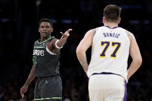 據統計,湖人球星東契奇和森林狼核心愛德華茲生涯至今常規賽交戰14次,東契奇8勝6負稍占上風。