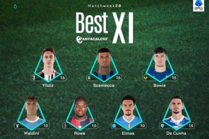 體育資訊3月11日訊 意甲第28輪戰罷,聯賽官方列出本輪最佳陣容,邁尼昂、伊爾迪茲、斯卡馬卡在列。