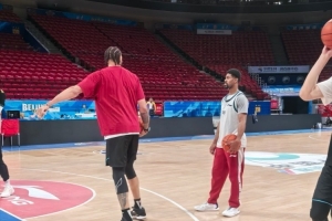 賽前,北京隊(duì)眾將進(jìn)行踩場訓(xùn)練,四外援悉數(shù)在列,新援麥基一同亮相。
