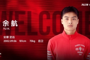 余航身體素質(zhì)出色,視野大局觀好,防守能力突出。歡迎余航加入南通海門珂締緣這個(gè)溫暖的大家庭,相信他的到來將為球隊(duì)帶來更加穩(wěn)固后防線。