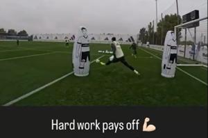 賽后庫爾圖瓦在社媒上分享了平時訓練的視頻,表示:努力工作終有回報,并@皇馬門將教練路易斯·洛佩斯。