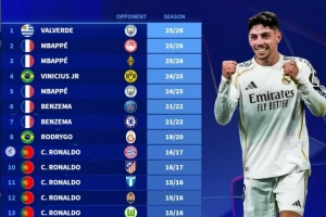 體育資訊3月12日訊 在本輪歐冠皇馬3-0擊敗曼城的比賽中,巴爾韋德上演帽子戲法,這也是皇馬球員第19次在歐冠做到這一點。德轉也盤點了皇馬隊史在歐冠生涯帽子戲法的情況:
