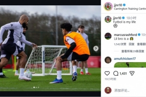 15歲的JJ·加布里埃爾是曼聯青訓最耀眼的新星,昨晚他在Instagram曬出自己跟隨一線隊訓練的照片,并寫道:“足球是我的生命。”