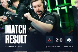 體育資訊3月14日訊 CS2大賽EPL S23來到1/4決賽,Spirit遭Astralis兩圖橫掃慘遭淘汰,A隊進軍半決賽對陣Aurora!