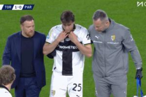 比賽第5分鐘,帕爾馬中場克雷馬斯基出現傷情,在場邊接受治療左腿被纏上繃帶。