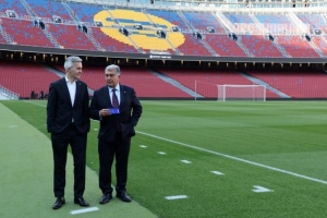 拍攝結(jié)束時,在球場邊線附近,緊挨著替補(bǔ)席,在各自重新與親信隨從會合后,他們用堅(jiān)定地握手道別,互相祝福好運(yùn)。今晚,兩人中只有一位將成為巴塞羅那足球俱樂部的主席。