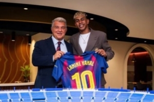 亞馬爾在社交媒體上曬出與拉波爾塔的合照,對此拉波爾塔說道:“亞馬爾發(fā)的照片讓我深受感動,我非常感謝他。”