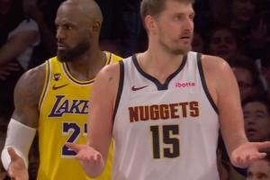 GIF-戈登突破造成犯規 詹姆斯與約基奇同時攤手