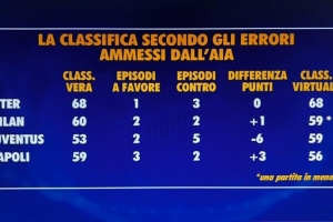 國米:實際積分68——有利誤判1,不利誤判3——虛擬積分68