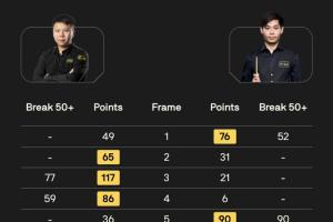 體育資訊03月16日訊 2026斯諾克世界公開賽在江西玉山舉行,第一比賽日14點(diǎn)場(chǎng)次比分結(jié)果如下。
