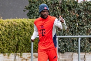 拜仁官方社媒曬出照片,確認戴維斯今天進行了跑步訓練。
