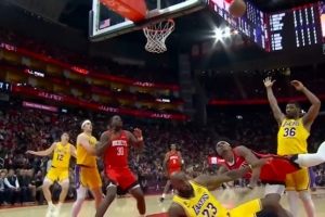 GIF-阿門沖筐造詹姆斯犯規 后者示意挑戰