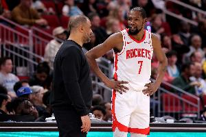 杜蘭特只用思考得分就好:上半場11投16分。火箭半場領先。
