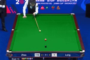 體育資訊03月17日訊 2026斯諾克世界公開賽64進32輪次,趙心童5-4戰勝龍澤煌晉級,趙心童在決勝局的粉球上秀了一把單手擊球。