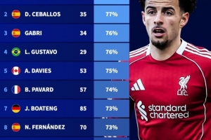 體育資訊3月18日訊 德國轉會市場盤點了1992-93賽季歐冠改制以來,至少出戰25場比賽的球員勝率情況,利物浦的柯蒂斯·瓊斯以80%的勝率居首。